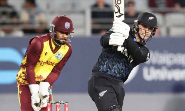 वेस्टइंडीज के शानदार क्षेत्ररक्षण से तीन खिलाड़ी रन आउट हुए। जेसन होल्डर और मैट फोर्ड ने बेहतरीन गेंदबाजी की। फोर्ड ने 20 रन देकर दो और होल्डर ने 31 रन देकर दो विकेट झटकर न्यूजीलैंड को बड़ा स्कोर नहीं बनाने दिया। टिम रॉबिन्सन (23) और रचिन रविंद्र (26) दोनों अच्छी शुरुआत के बावजूद बड़ी पारी नहीं खेल सके।