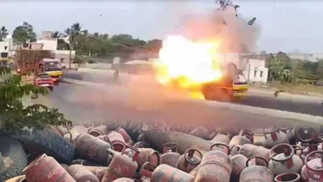 तमिलनाडु के अरियालूर में एक बड़ा हादसा हुआ. एक ट्रक जिसमें गैस सिलेंडर भरे थे, वो अचानक पलट गया. इसके बाद लगातार कई सिलेंडरों में आग गई. एक के बाद एक धमाके के बाद पूरा इलाका दहल गया. जानकारी के मुताबिक, मंगलवार को अरियालुर के पास वरणावासी में एक ट्रक एलपीजी सिलेंडर ले जा रहा था, जो पलट गया और उसमें धमाकों के बाद आग लग गई. रिपोर्ट्स के मुताबिक, ट्रक चालक ने नियंत्रण खो दिया था, जिससे ये हादसा हुआ.