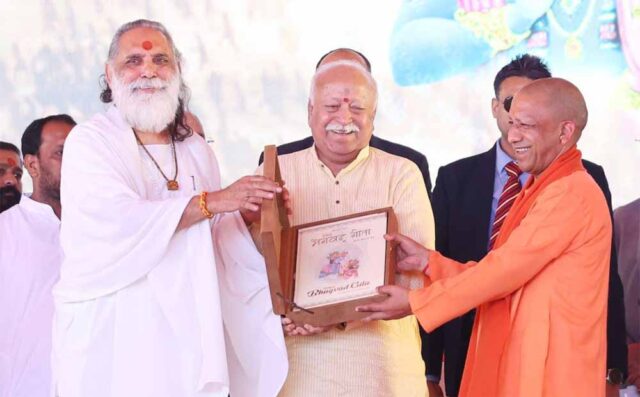 सीएम योगी ने कहा कि राष्ट्र प्रथम के भाव के साथ हर पीड़ित संग खड़ा होना (जो भारत को परम वैभव तक ले जाने में सहायक हो सकता है) राष्ट्रीय स्वयंसेवक संघ की प्रेरणा है। आरएसएस ने पिछले 100 वर्षों में सेवा के साथ कोई सौदेबाजी नहीं की, लेकिन कुछ लोगों ने दुनिया व भारत में सेवा को ही सौदे के माध्यम बनाया है। वे लोभ, लालच और दबाव से भारत की डेमोग्राफी को बदलने के लिए छल व छद्म का सहारा लेकर अपना ताना-बाना बदलकर भारत की आत्मा पर प्रहार करने का प्रयास कर रहे हैं। इन स्थितियों में भगवान की वाणी श्रीमद्भगवदगीता नई प्रेरणा बन सकती है।