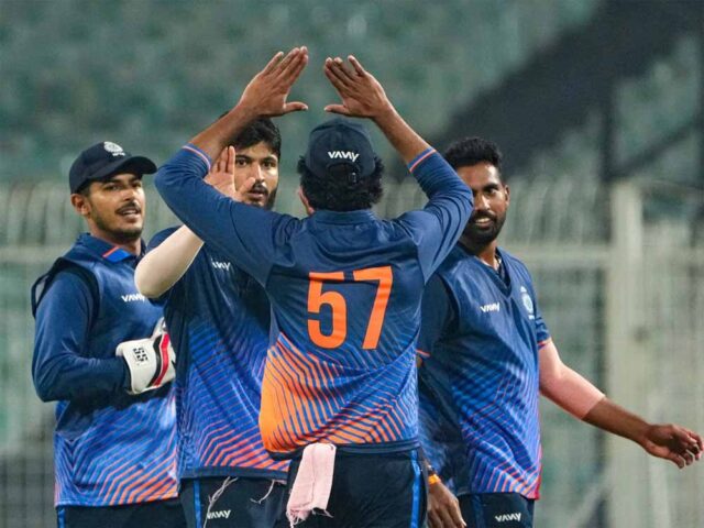 उन्होंने अपनी पहली ही गेंद पर एक विकेट लिया और चंडीगढ़ के टॉप और मिडिल-ऑर्डर को तहस-नहस कर दिया। मनन वोहरा चंडीगढ़ के अकेले बैटर थे जिन्होंने 52(43) रन बनाकर कोई रुकावट नहीं डाली, क्योंकि टीम सिर्फ 134/8 रन ही बना सकी। जवाब में, हर्ष गवली (74*) और हरप्रीत सिंह भाटिया (48) ने 95 रन की पार्टनरशिप करके आसान जीत पक्की कर दी।