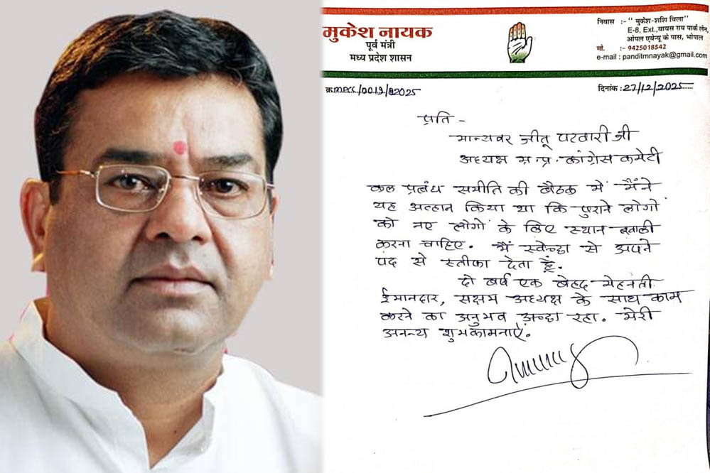 मध्य प्रदेश कांग्रेस के मीडिया विभाग में बड़ा उलटफेर देखने को मिला है। मीडिया विभाग के अध्यक्ष मुकेश नायक ने अपने पद से इस्तीफा दे दिया है। इस्तीफे में उन्होंने लिखा है कि नए लोगों को आगे आने का मौका देने के लिए वे यह कदम उठा रहे हैं। मुकेश नायक ने कहा कि उनका दो साल का कार्यकाल पूरी ईमानदारी और मेहनत से पूरा किया गया है। उन्होंने यह भी बताया कि प्रबंधन समिति की बैठक में उन्होंने पहले ही इस मांग को रखा था।