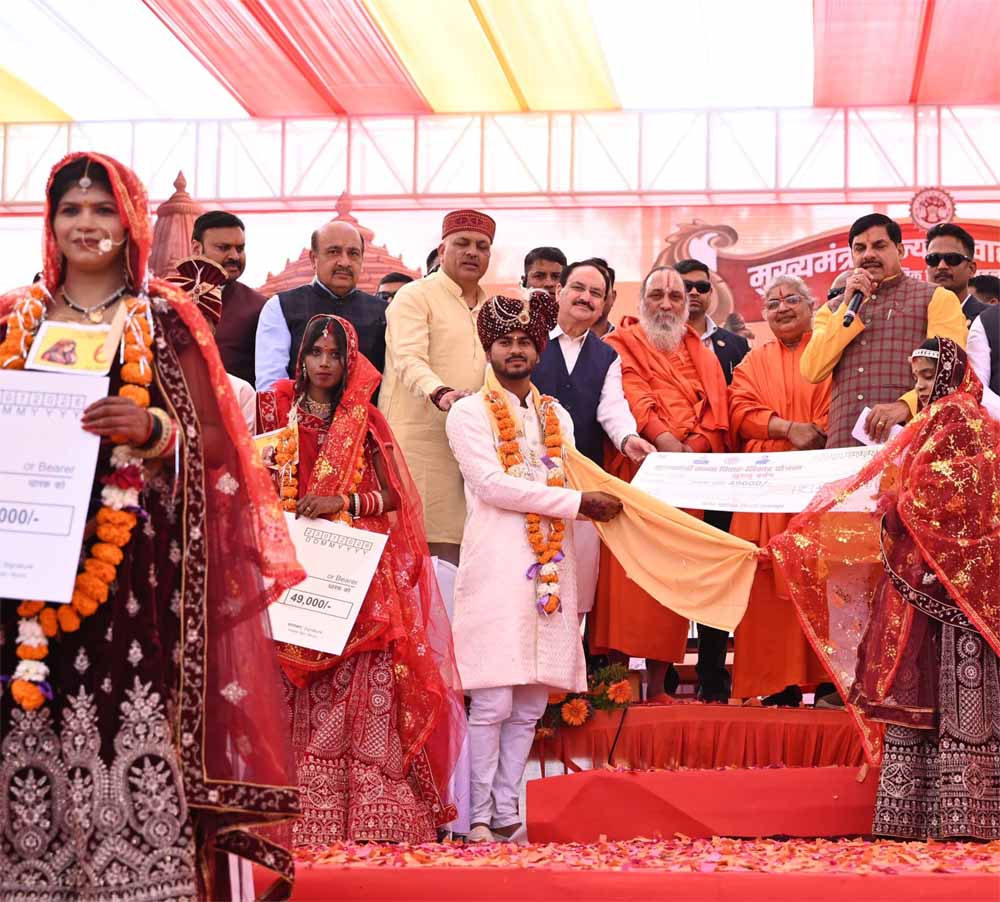 मुख्यमंत्री डॉ. मोहन यादव ने बसंत पंचमी पर हिन्दू और मुस्लिम समुदाय के 121 जोड़ों के सामूहिक विवाह को सामाजिक एकता की मिसाल निरूपित करते हुए नवदम्पत्तियों को भावी जीवन के लिये शुभकामनाएँ दीं। उन्होंने नवदम्पत्तियों को मुख्यमंत्री कन्यादान विवाह/निकाह योजना में 51-51 हजार रुपये की राशि के चेक भी भेंट किये। इस अवसर पर केंद्रीय स्वास्थ्य मंत्री जगत प्रकाश नड्डा ने भी नवदम्पत्तियों को आशीर्वाद दिया।