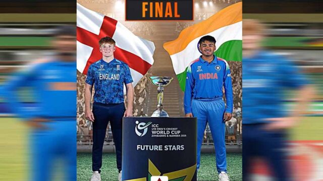 आईसीसी पुरुष अंडर-19 वर्ल्ड कप 2026 के फाइनल में 6 फरवरी (शुक्रवार) को भारतीय टीम का सामना इंग्लैंड से होगा. हरारे के हरारे स्पोर्ट्स क्लब में दोनों टीमों के बीच ये मुकाबला खेला जाना है. रिकॉर्ड छठा अंडर-19 वर्ल्ड कप खिताब जीतने के लक्ष्य के साथ भारत इस मुकाबले में उतरेगा. वहीं इंग्लिश टीम की निगाहें दूसरी बार खिताबी जीत हासिल करने पर हैं. भारतीय समयानुसार इस मुकाबले में टॉस दोपहर 12.30 बजे होगा और पहली गेंद दोपहर 1 बजे फेंकी जाएगी.