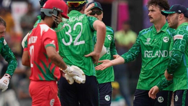 आईसीसी मेन्स टी20 वर्ल्ड कप 2026 के मैच नंबर-22 में शनिवार (14 फरवरी) को आयरलैंड का सामना ओमान से हुआ. दोनों टीमों के बीच ग्रुप-बी का यह मुकाबला कोलंबो के सिंहलीज स्पोर्ट्स क्लब में खेला गया. मुकाबले में आयरलैंड ने ओमान को 96 रनों से पराजित किया. आयरलैंड ने ओमान को जीत के लिए 236 रनों का टारगेट दिया था. इसका पीछा करते हुए ओमानी टीम 18 ओवर में 139 रनों पर सिमट गई. इसके साथ ही ओमान मौजूदा टी20 वर्ल्ड कप में ग्रुप-स्टेज में ही बाहर होने वाली पहली टीम बन गई.