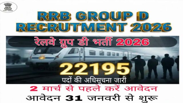 भारतीय रेलवे ने आरआरबी ग्रुप डी भर्ती 2026 के लिए आवेदन प्रक्रिया शुरू कर दी है. इस भर्ती के जरिए 22,195 लेवल-1 पदों पर नियुक्ति की जाएगी. जो उम्मीदवार सरकारी नौकरी की तैयारी कर रहे हैं, उनके लिए यह अच्छा मौका है. आवेदन 31 जनवरी से शुरू हो चुके हैं और 2 मार्च 2026 रात 11:59 बजे तक ऑनलाइन फॉर्म भरा जाएगा. उम्मीदवार rrbapply.gov.in वेबसाइट पर जाकर आवेदन कर सकते हैं.