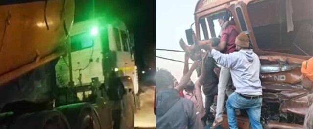 धार जिले के धामनोद थाना क्षेत्र में राऊ-खलघाट फोरलेन के गणपति घाट पर देर रात लगभग 3 बजे भीषण सड़क हादसा हो गया। आगे चल रहे कंटेनर में पीछे टैंकर जा घुसा। टक्कर इतनी जबरदस्त थी कि चालक केबिन में बुरी तरह फंस गया। प्राप्त जानकारी के अनुसार ट्रक इंदौर से मुंबई की ओर जा रहा था। इसी दौरान गणपति घाट पर आगे चल रहे कंटेनर से जा टकराया।