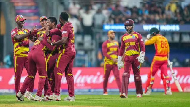 आईसीसी मेन्स टी20 वर्ल्ड कप का 44वां मैच सोमवार को जिम्बाब्वे और वेस्टइंडीज के बीच खेला गया. इस मैच में वेस्टइंडीज को 107 रनों से जीत मिली है. इस मुकाबले में टॉस जीतकर जिम्बाब्वे ने पहले गेंदबाजी का फैसला लिया था. वेस्टइंडीज के बल्लेबाजों ने तूफानी बैटिंग की और 254 रन ठोक डाले. इसके जवाब में उतरी जिम्बाब्वे की टीम महज 147 रन ही बना सकी और 18वें ओवर में ऑलआउट हो गई. वेस्टइंडीज ने इस विश्वकप का सबसे बड़ा स्कोर बनाया था.