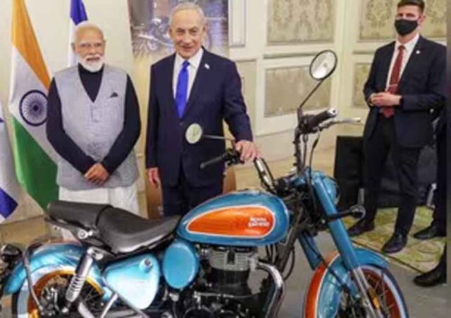 रॉयल एनफील्ड (Royal Enfield) एक ऐसा इंडियन मोटरसाइकिल ब्रांड है जिसने दुनियाभर में अपनी पहचान बनाई है। चेन्नई की इस बाइक बनाने वाली कंपनी ने यूरोप, नॉर्थ अमेरिका और साउथ एशिया के मार्केट में अपनी मजबूत पकड़ बना ली है। हालांकि, कंपनी को अभी सेंट्रल एशिया और मिडिल ईस्ट के मार्केट में गहराई तक जाना बाकी है। येरुशलम (Jerusalem) में एक टेक एग्जीबिशन में रॉयल एनफील्ड ने गोअन क्लासिक 350 को शोकेस किया है। इस इवेंट में भारत के प्रधानमंत्री नरेंद्र मोदी और इजराइल के प्रधानमंत्री बेंजामिन नेतन्याहू शामिल रहे।