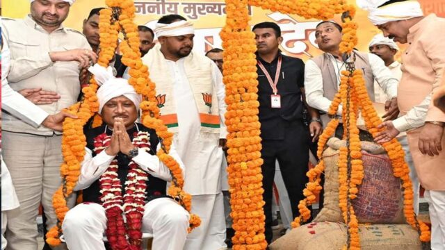 मुख्यमंत्री को धान से तौलकर प्रदेश के अन्नदाताओं ने जताया आभार