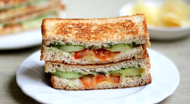 गरमा-गरम सैंडविच को केचअप या चटनी के साथ सर्व करें।
