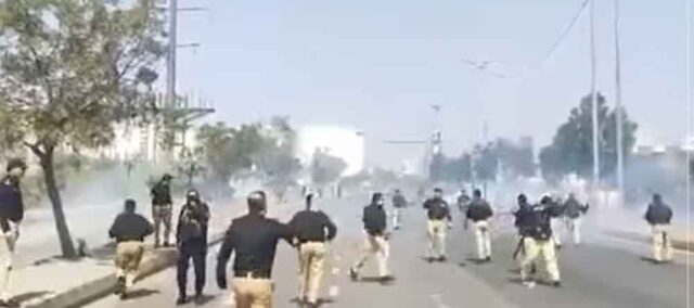 सुरक्षा कारणों से प्रशासन ने सुल्तानाबाद को माई कोलाची से जोड़ने वाली सड़कों को अस्थायी रूप से बंद कर दिया। जिन्ना ब्रिज से आने वाले ट्रैफिक को I.I. चुंदरीगर रोड की ओर डायवर्ट किया गया, ताकि स्थिति पर नियंत्रण बनाए रखा जा सके और जाम की स्थिति न बने। अधिकारियों ने नागरिकों से अपील की है कि वे फिलहाल उस क्षेत्र से दूर रहें, क्योंकि सुरक्षा बल विरोध प्रदर्शन को नियंत्रित करने और कानून-व्यवस्था बनाए रखने में जुटे हैं। सोशल मीडिया पर वायरल हो रहे वीडियो में भीड़ एंट्रेंस पर तोड़-फोड़ करती और कथित तौर पर बिल्डिंग के कुछ हिस्सों में आग लगाती दिख रही है।