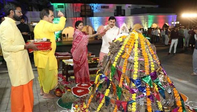 मुख्यमंत्री डॉ. यादव ने सपत्नीक पूजा-अर्चना कर किया होलिका दहन