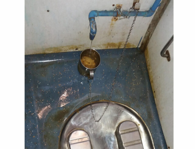 अधिकारियों के मुताबिक, ट्रेन जब स्पीड में होती है तो मग से पानी भरते समय ये फर्श पर गिर जाता है जिससे टॉयलेट का फर्श गंदा हो जाता है