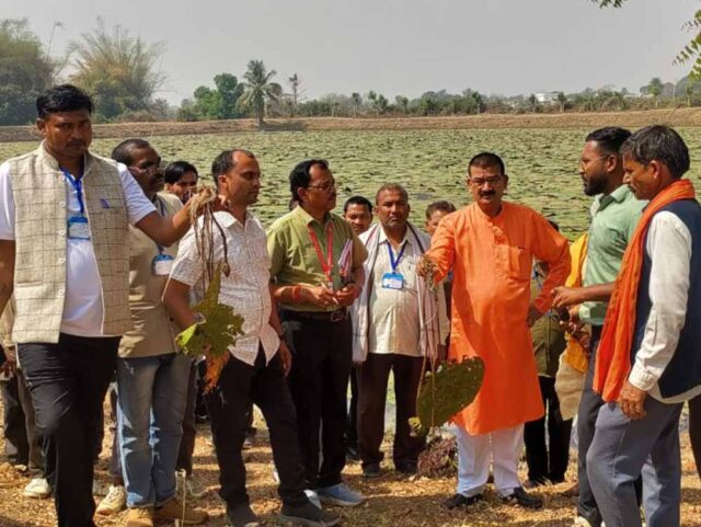मध्यप्रदेश के किसानों का ग्राम लिंगाडीह आरंग में मखाना खेती भ्रमण एवं प्रशिक्षण संपन्न