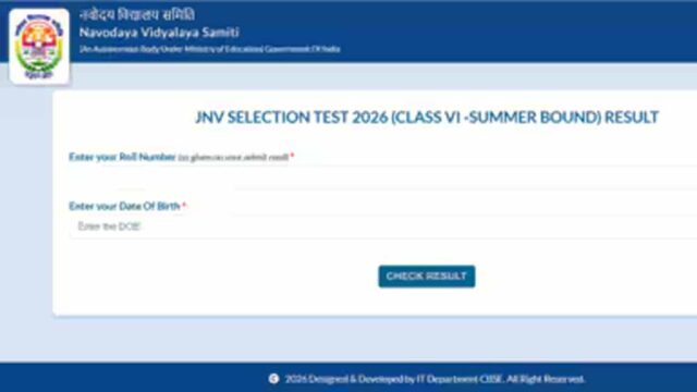 नवोदय विद्यालय समिति (NVS) ने क्लास 6 एडमिशन टेस्ट का रिजल्ट जारी कर दिया है। जवाहर नवोदय विद्यालय (जेएनवी) क्लास 6 में एडमिशन के लिए फेज-I की जवाहर नवोदय विद्यालय चयन परीक्षा (JNVST) दिसंबर 2025 में आयोजित की गई थी। लाखों विद्यार्थियों ने ने इस एडमिशन टेस्ट के लिए आवेदन किया था। रिजल्ट जारी होने के बाद अब मेरिट लिस्ट के आधार पर डॉक्यूमेंट वेरिफिकेशन (डीवी) और एडमिशन की प्रक्रिया शुरू होगी। अलॉट हुए स्कूल जाकर जरूरी डॉक्यूमेंट्स दिखाने होंगे। जवाहर नवोदय विद्यालय में एडमिशन के लिए कोई फीस नहीं ली जाती।