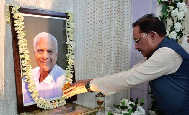 मुख्यमंत्री विष्णु देव साय ने आज जशपुरनगर के वरिष्ठ सामाजिक कार्यकर्ता एवं लोकतंत्र सेनानी स्वर्गीय महावीर प्रसाद जैन के निवास पहुंचकर उनके छायाचित्र पर पुष्प अर्पित कर श्रद्धांजलि दी।